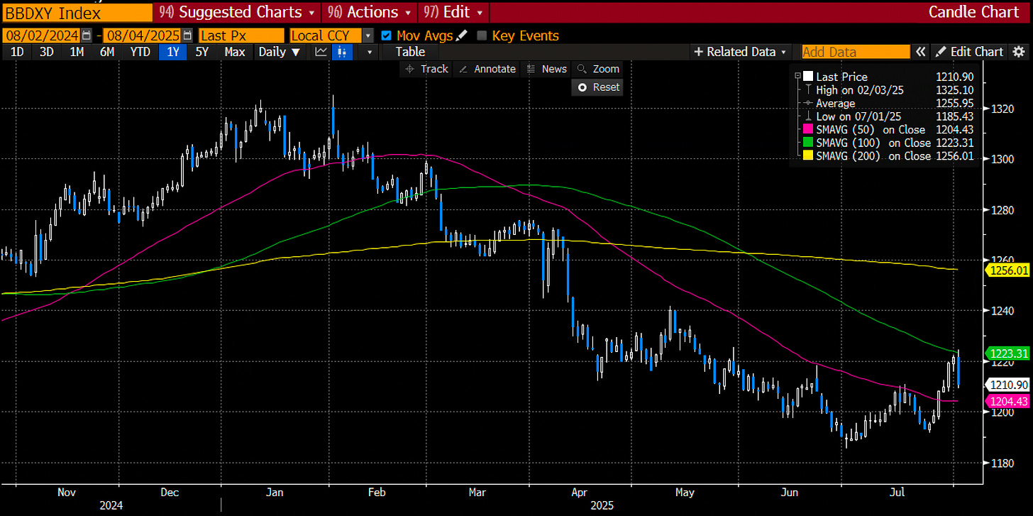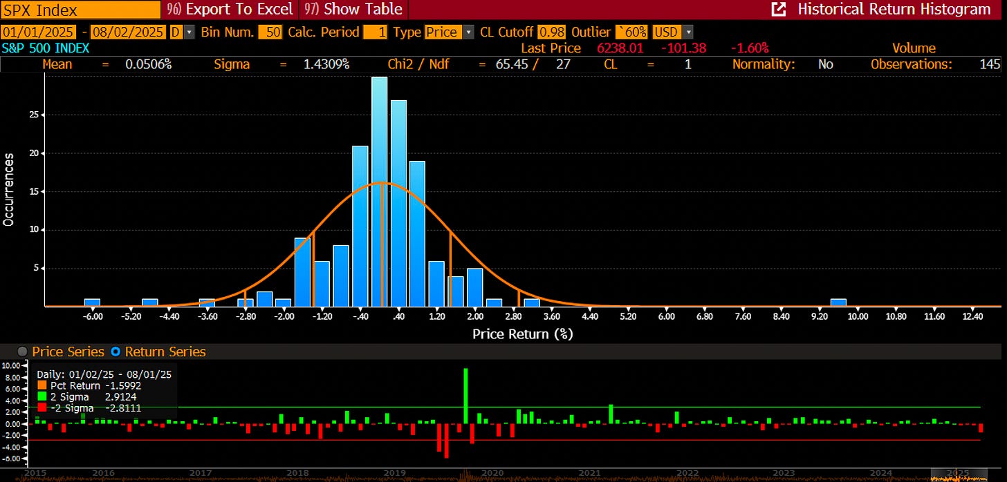 Equities were already weaker ahead of the labour figures, driven by renewed trade policy noise as Trump extended the deadline for U.S. tariffs on imported goods from 1 August to 7 August, allowing more time for countries to negotiate. Switzerland faces a 39 per cent levy, while Brazil could see tariffs as high as 50 per cent. Better get your hands on a Swiss watch soon if you are planning to buy one in the US. And no, prices will be fully passed through, contrary to what some US officials might tell you.
