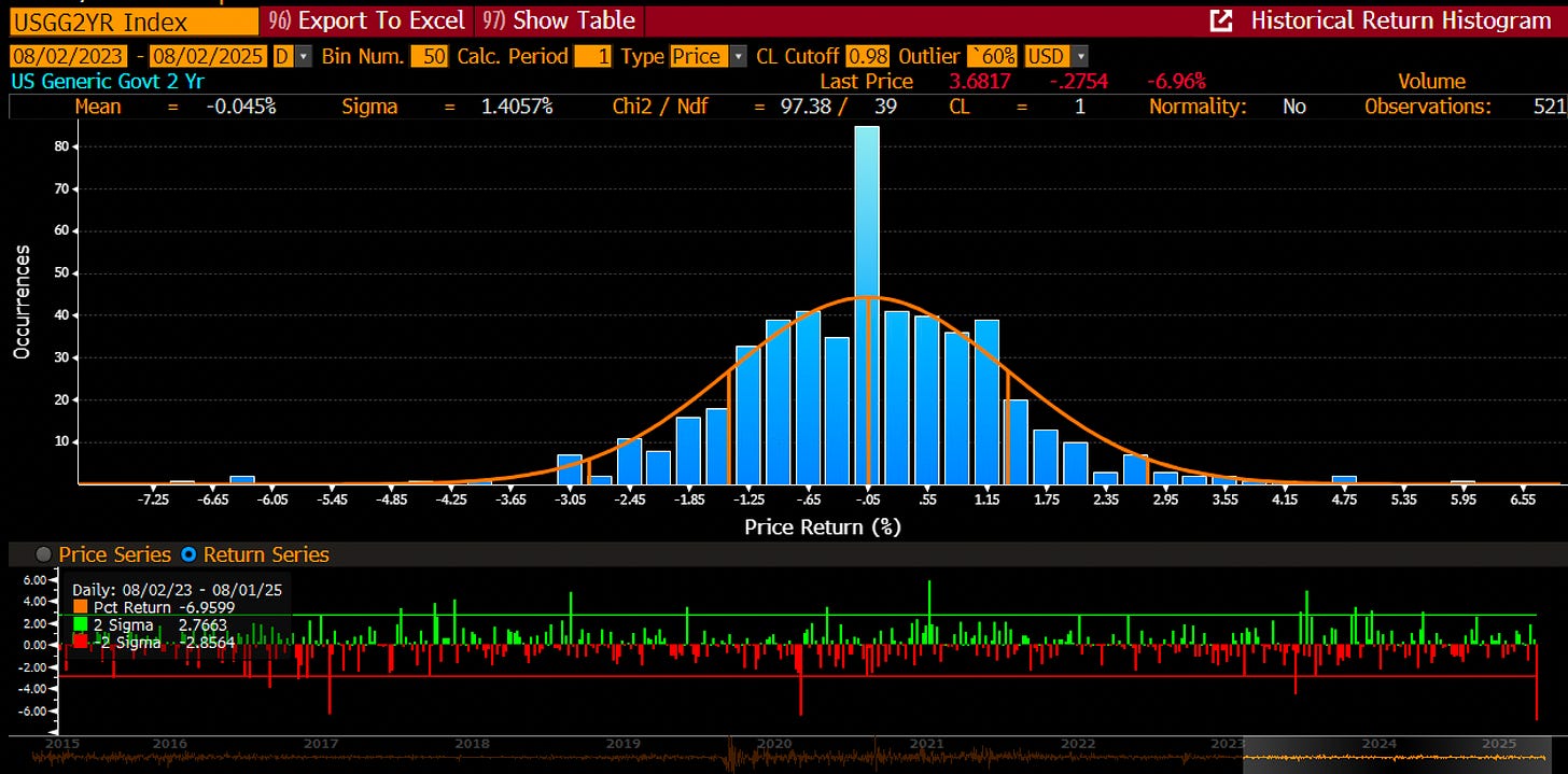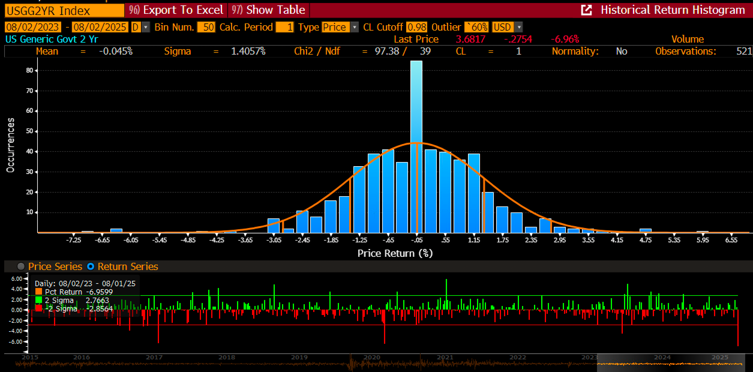 2-year Treasuries had a nearly 3-standard-deviation daily move, surpassing what we witnessed exactly a year ago following a weak payroll and JPY carry unwind.