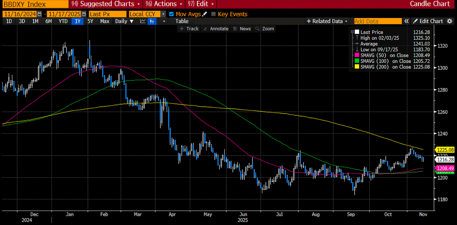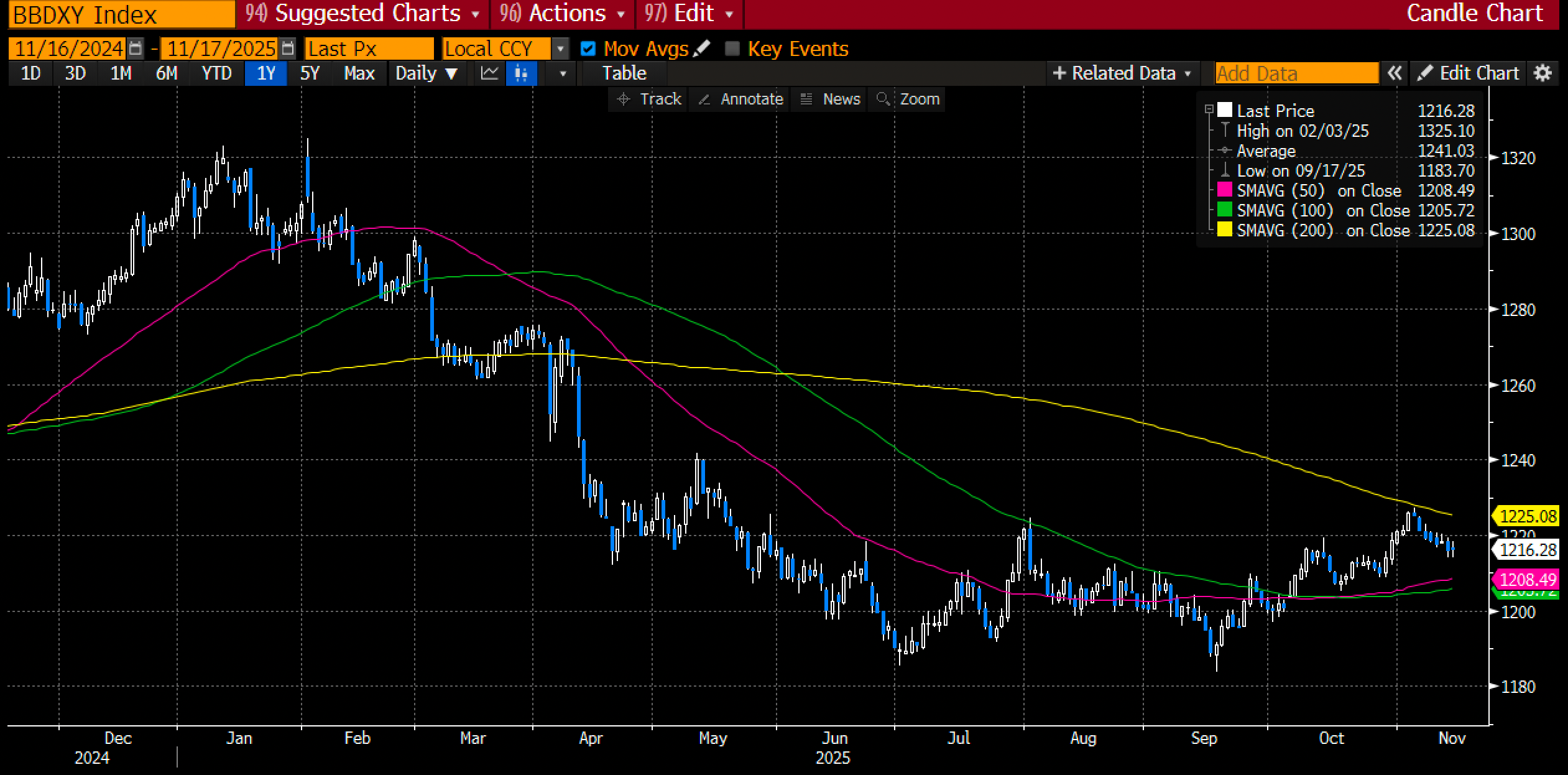 The Dollar has recently been weakening again after tagging the 200 moving average, driven mainly by political pressure and a seemingly weakening US administration.