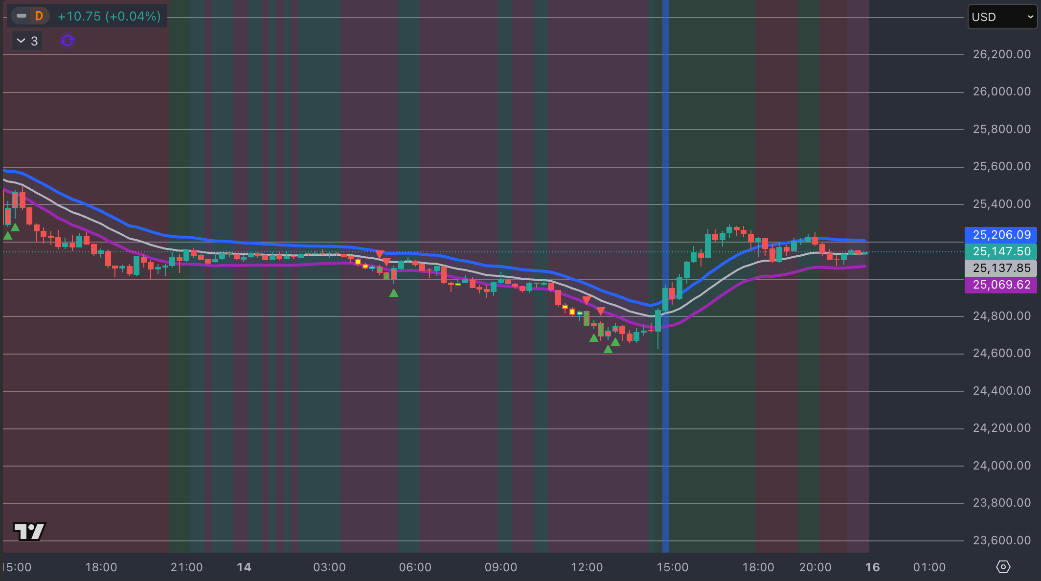 The intra-day model (shown below) highlighted an intra-day reversal opportunity on Friday (NQ in the chart below), which was very well timed. For an introduction and a guide on how this model works, please see the guide.