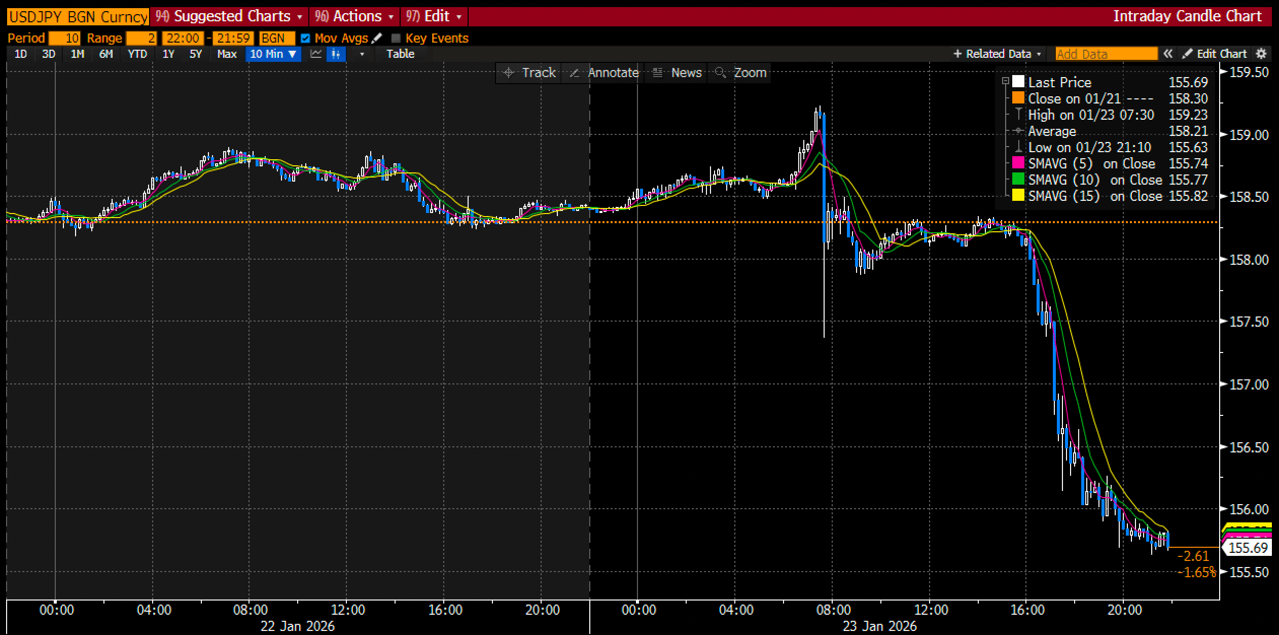 Which brings us to the move that felt like it came straight out of a Traitors episode. Late in the UK trading day on Friday, USDJPY suddenly plummeted by roughly 1.5% after reports that the New York Fed conducted rate checks on the currency pair. Rate checks are not an intervention, but they are nothing either. They are a signal that someone wants the market to know they are watching, and that the cost of testing levels may be rising.