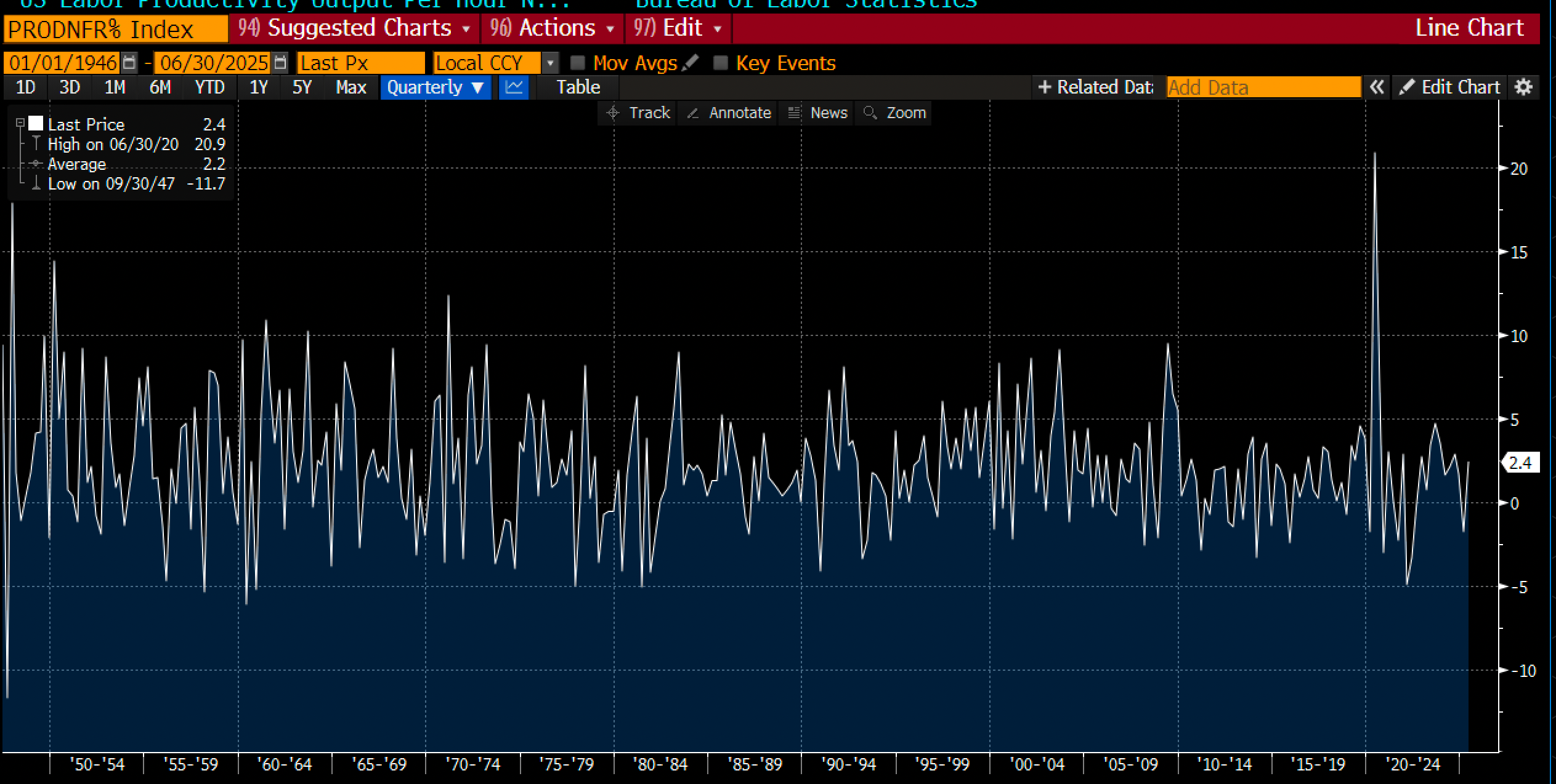 With declining labour force participation, the only way to grow is through productivity, which has been in a steady decline, mostly because the service-led impact is so hard to measure correctly.