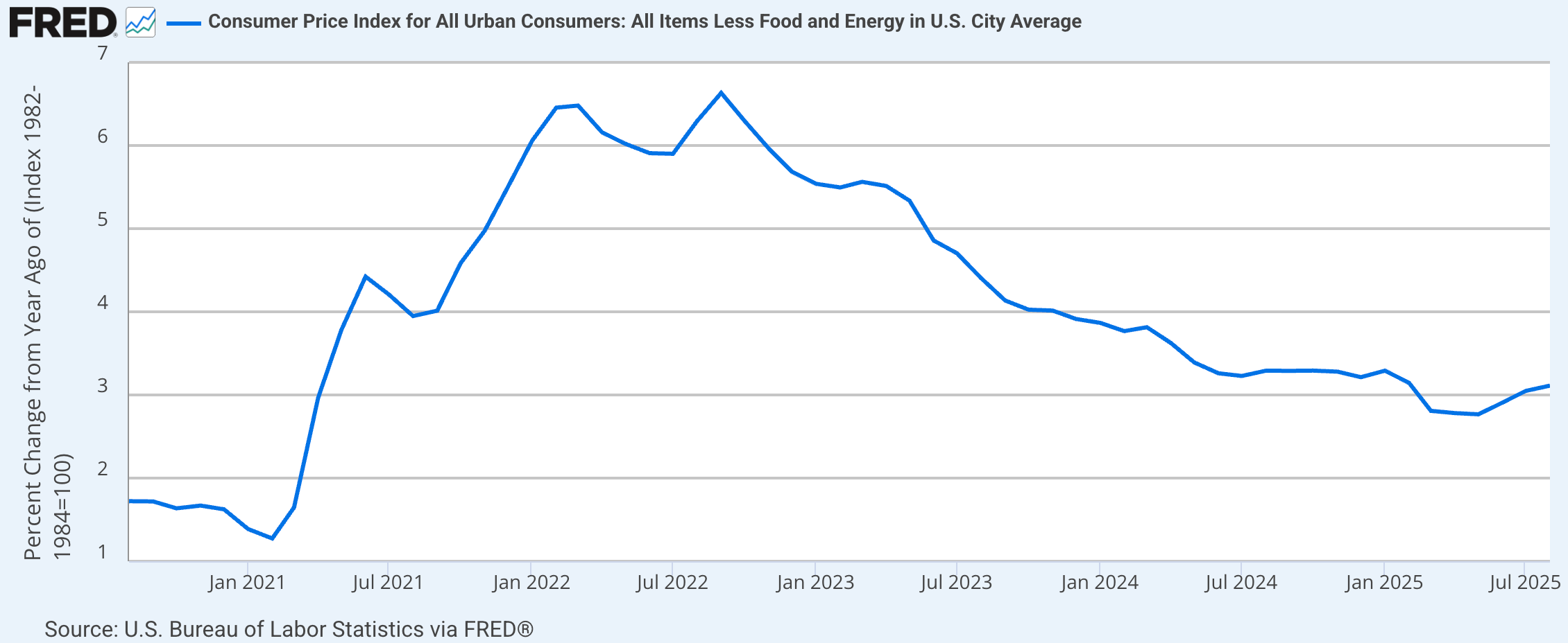 Rate cuts just as core inflation (see below) is accelerating might feel uncomfortable to some FOMC members. Yield curves flattened aggressively last week, which isn’t normally an observation as rate cuts progress.