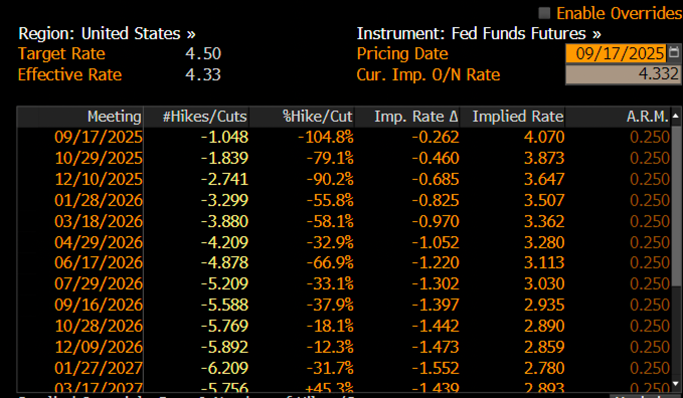 Much focus is given to the fact that growth currently is holding up well, arguing that there is no immediate need for the Fed to cut proactively. This, however, misses the point that their entire job is predicated on safeguarding forward conditions, something that equity and commodity markets have already sniffed out. With around 150 bps loaded into the STIR market (see below), what can we expect and how should we play this?