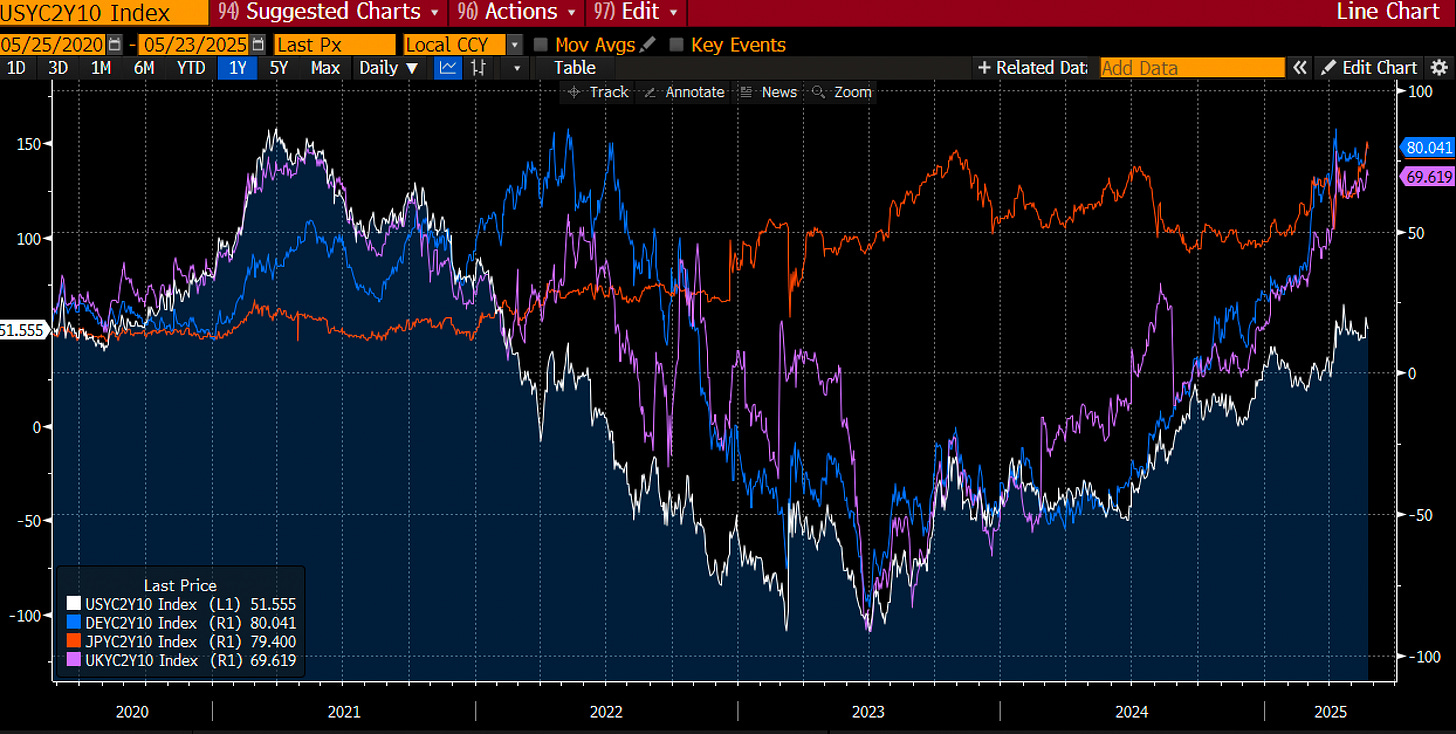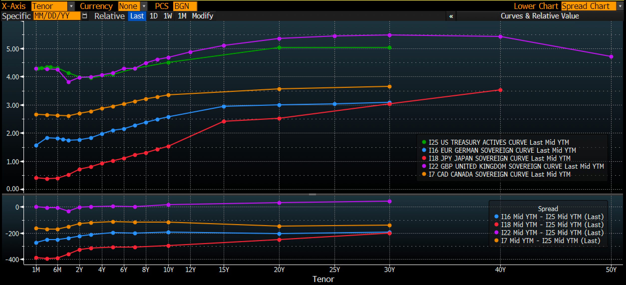 The recent steepening of global yield curves has caught much attention. Looking at the comparative curves for some countries would reveal that only Japan really stands out as to how steep the very long-end is trading, while the curvature in other countries is not too dissimilar from the 20-year point out. For a more detailed discussion on yield curves and convexity, please explore my educational series on Trading Yield Curves.