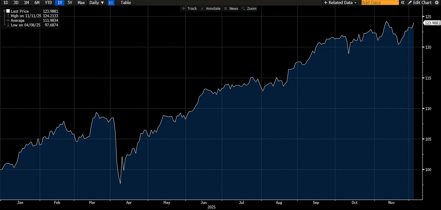 Our global macro buy-and-hold portfolio for 2025 is up 24% YTD in USD terms, and I am already working on the allocation for 2026, which, as I alluded to, won’t be a year many are expecting. Rate cuts, fiscal, capex spend, it’s all good news for risk as I’m reading some of the already published outlooks for next year. Macro never follows the obvious path, what normally transpires is sometimes what people least expect.