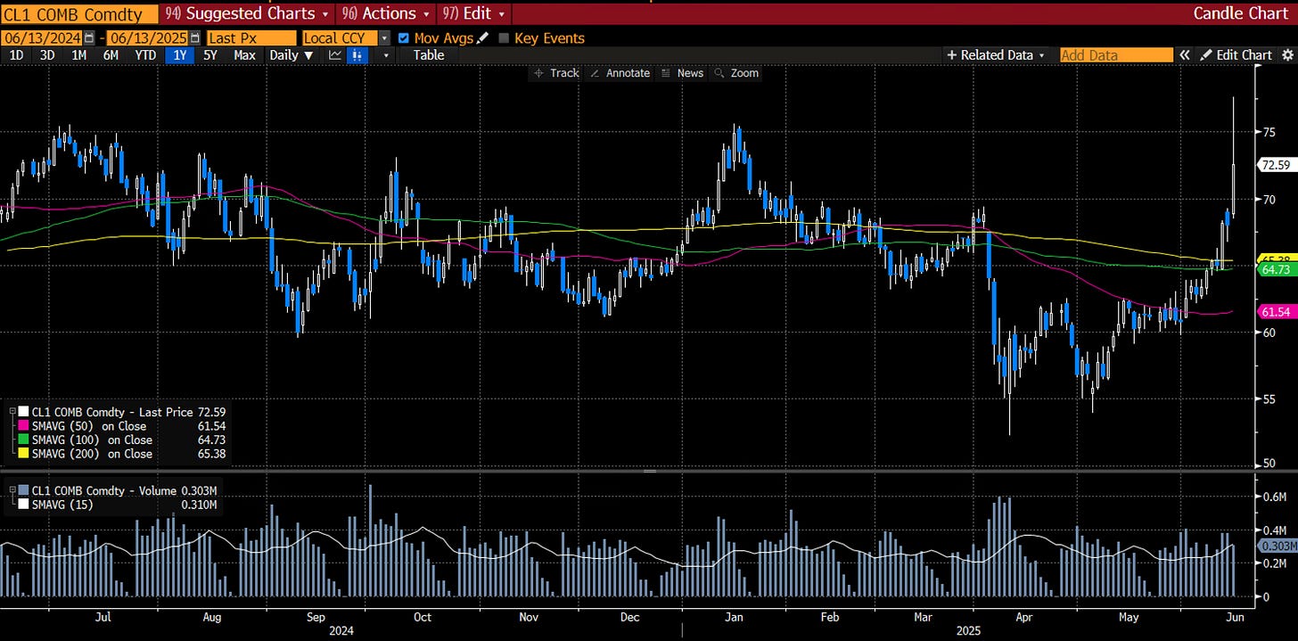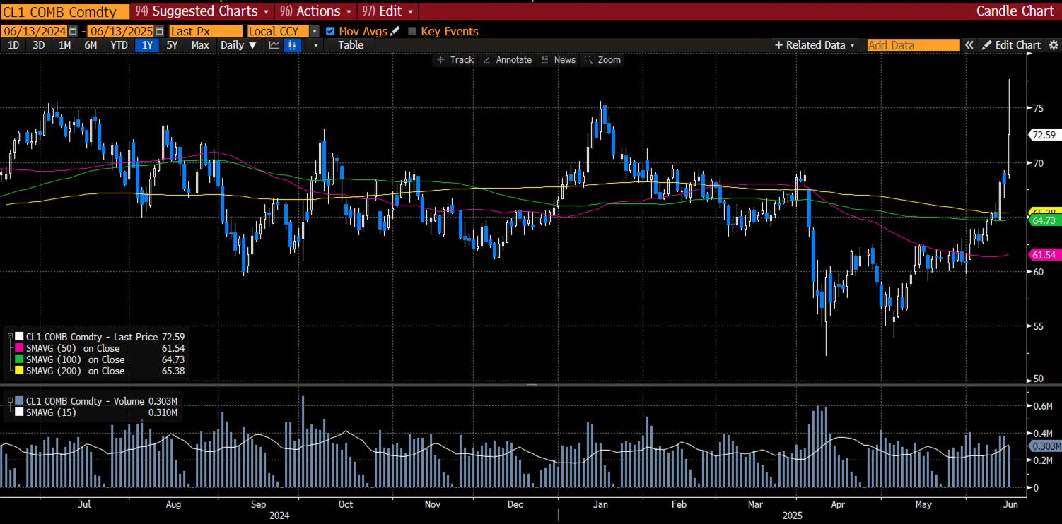 Friday the 13th it is, and I was woken up by the news that Israel conducted an operation and launched air strikes on Iran overnight. This followed days of speculation and Israel’s growing frustration regarding a potential US-Iran nuclear agreement. Markets have reacted as one would expect, but less violently than anticipated. Why is that? Generally, I believe the risk is now a reality, and markets have already anticipated a possible escalation.