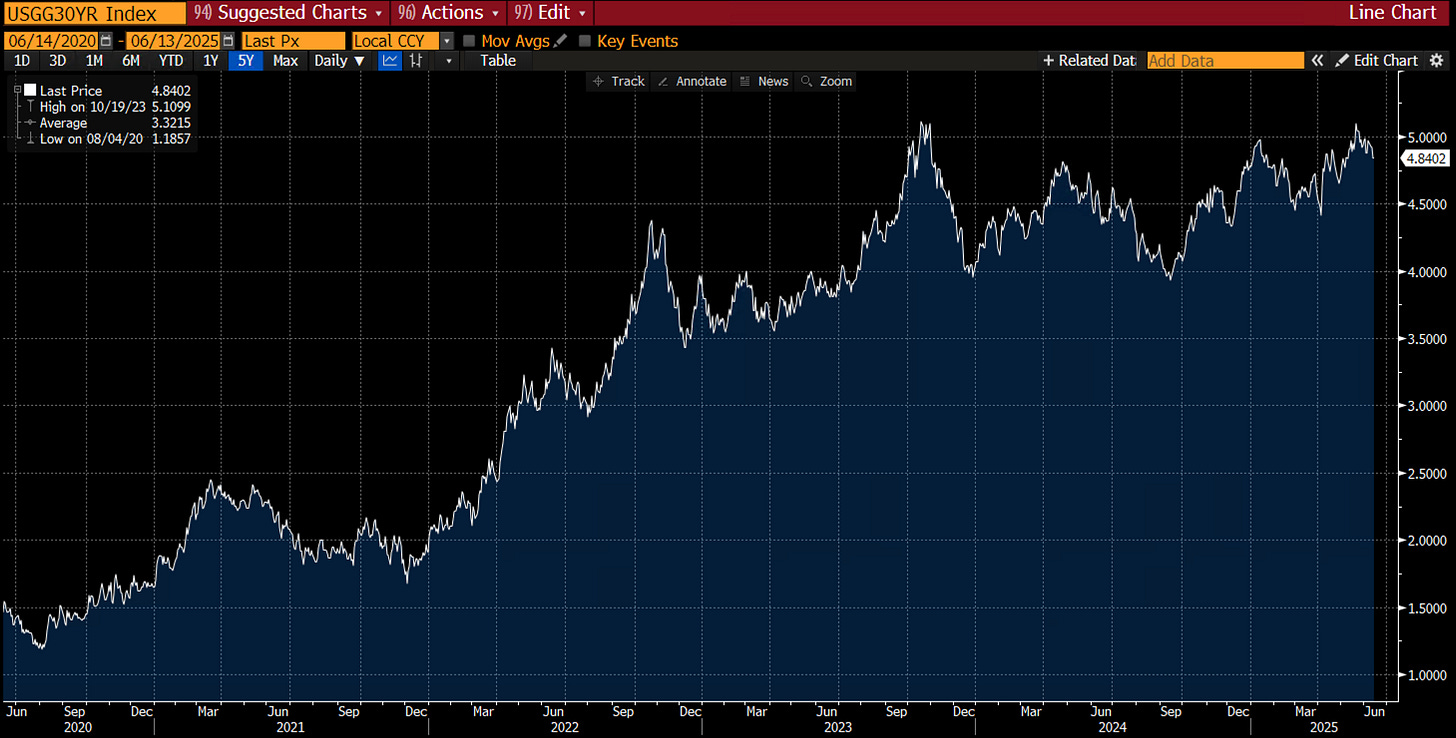 What’s next is possibly a bit of an unwind of a very popular macro narrative, namely US 30-year treasuries, which saw a solid auction yesterday. Stabilising long-dated yields in Japan and the UK has settled the fiscal tragedy narrative for now. 30-year US yields stand at 4.84% with real yields of 2.6%, offering pretty compelling entry points. Now that some real-money bond gurus are proclaiming the end of the US long bond, I can see a scenario unfolding where we can potentially rally a bit. I have nothing crazy in mind. 25-30 bps from here should do the trick.