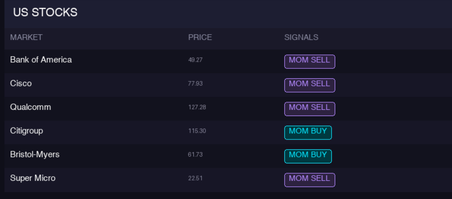 For now, the site includes the recently launched dashboard, which shows all currently tracked securities and gives an overview of momentum strength, reversal plays and performance since the momentum signal has fired.