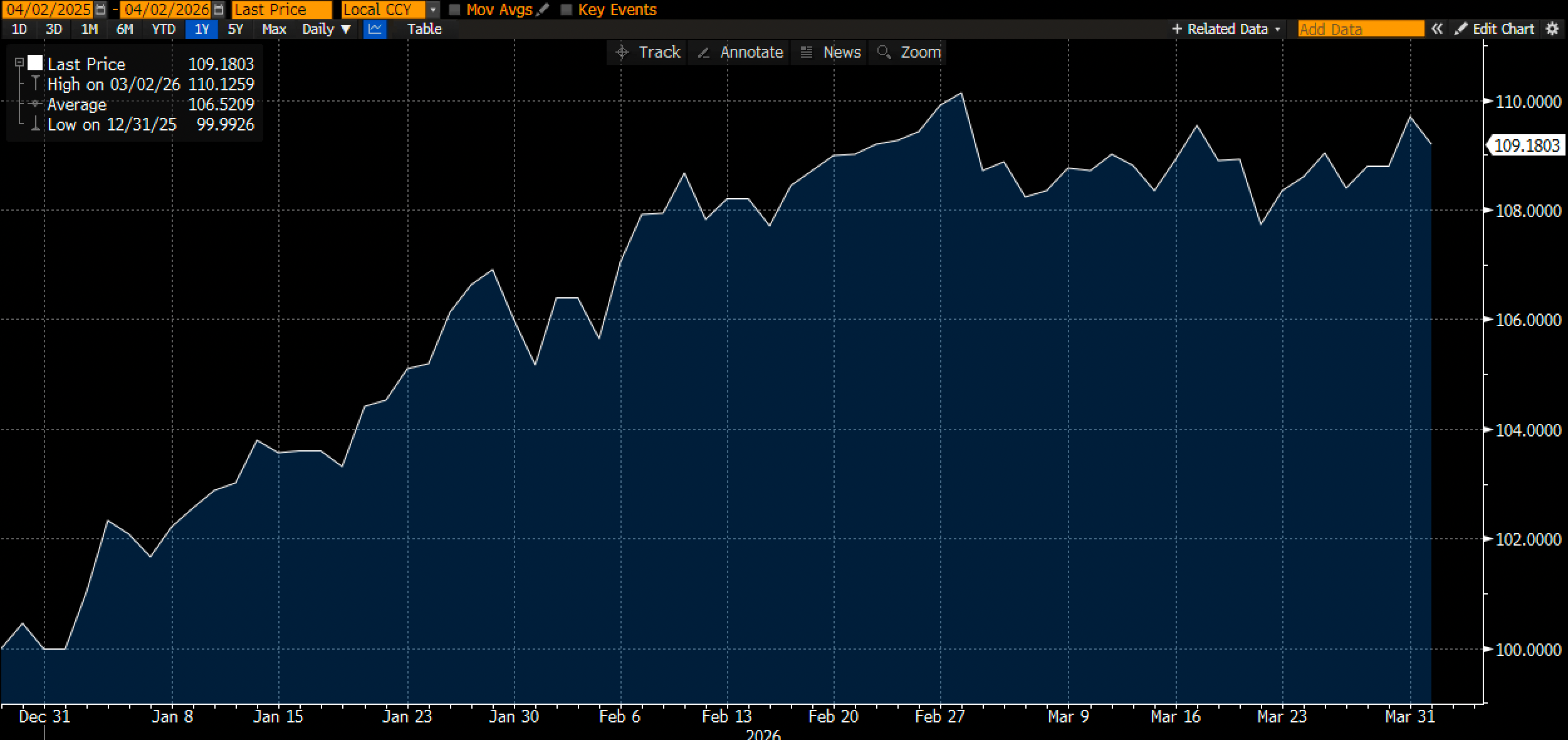 Our buy-and-hold portfolio for the year ended March on a strong footing, having almost regained the high watermark of just north of 10%, and now tracking YTD USD performance of 9.2%. The hedges have worked while we are letting the strategic allocations run.