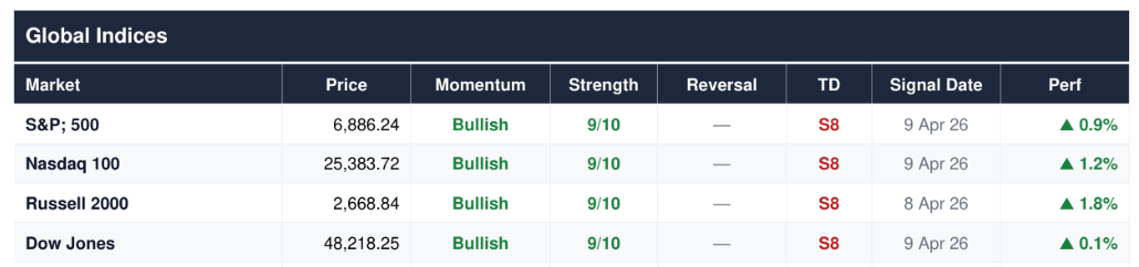 Here’s what I keep coming back to. Our dashboard flagged last week that momentum in equities had turned. Not hope, not narrative, not vibes — the model turned. And this is the point I want to stress, especially for those who found the past few weeks disorienting. It’s easy to get anchored by headlines, by the emotional whiplash of annihilation rhetoric one day and rally mode the next. The models don’t care about any of that. They read price, flow, and structure. When they turn, you pay attention. When they don’t, you stay disciplined. That’s the entire point of having a process.