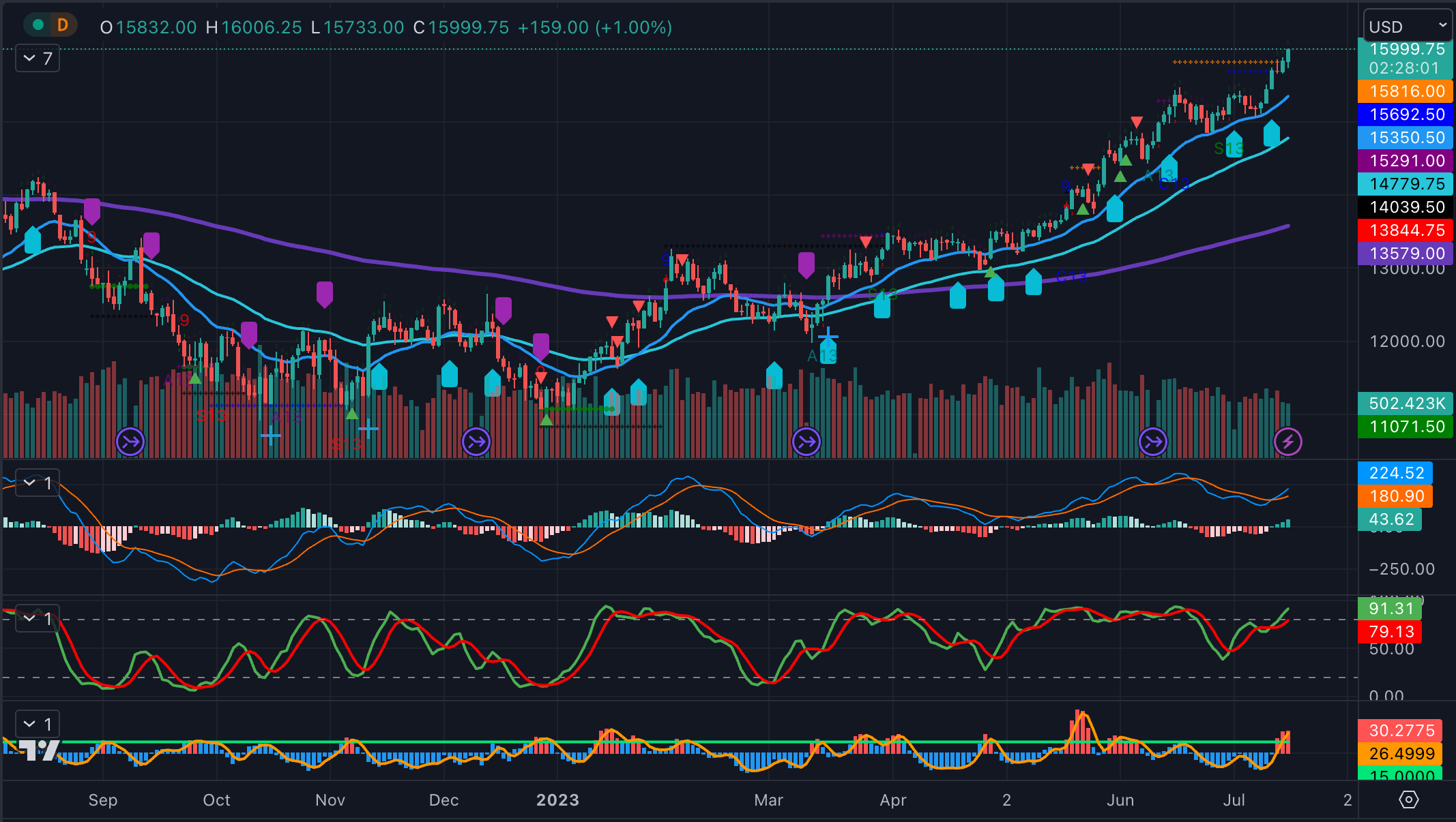 NQ, the same but progressing in terms of red bar counts. This would indicate a retracing is ahead. So chasing higher here is, according to the model, not warranted.