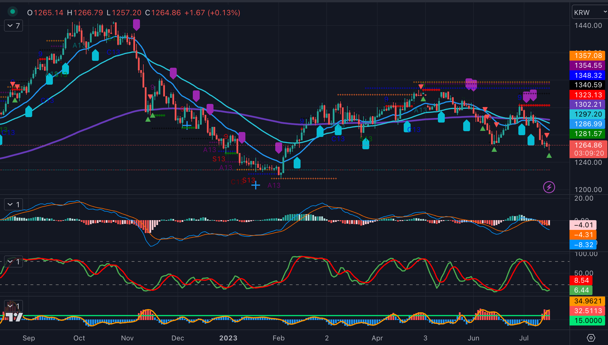 And lastly, USD/KRW, shows similar upcoming exhaustion.