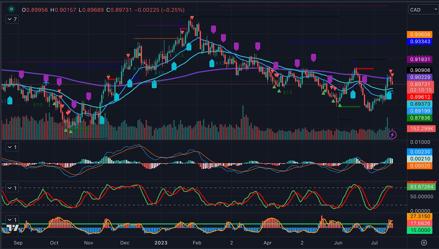 AUD/CAD, is another one of the tracked FX cross exhibiting upside exhaustion.